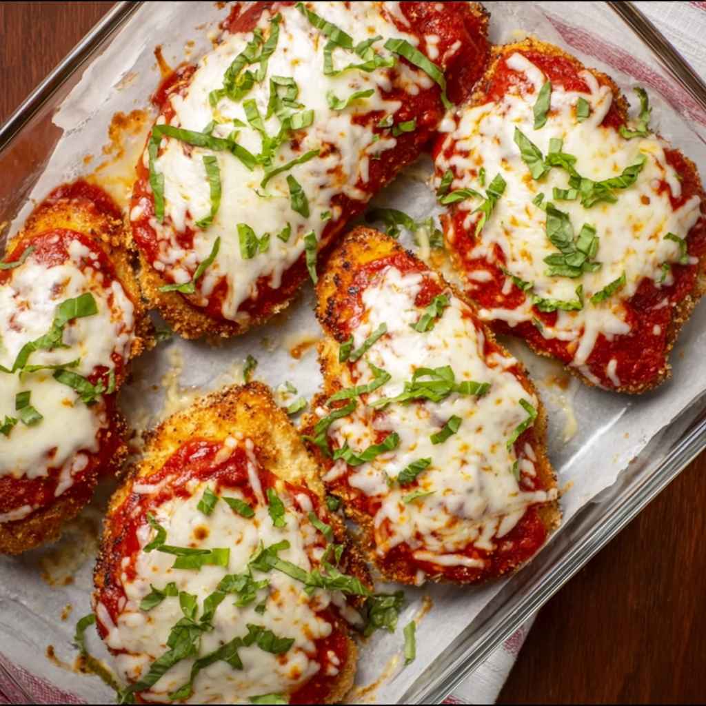 This Baked Chicken Parmesan recipe offers all the crispy, cheesy goodness of the traditional Italian favorite without the heavy oil from deep frying. It is an easy, family-friendly dinner that results in incredibly moist chicken and a perfectly golden crust every time.