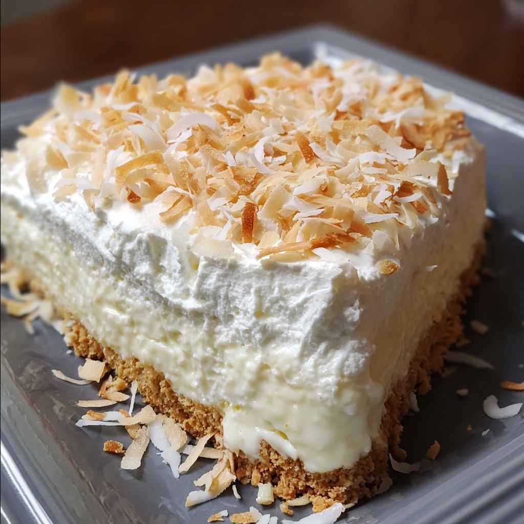 This Coconut Cream Lush is a fantastic choice for warm-weather gatherings like Memorial Day, the 4th of July, or Labor Day. It pairs beautifully with other light desserts like Pineapple Dream or Blueberry Lush. Serve it chilled on a plate with a few extra toasted coconut flakes sprinkled on top for a professional touch.