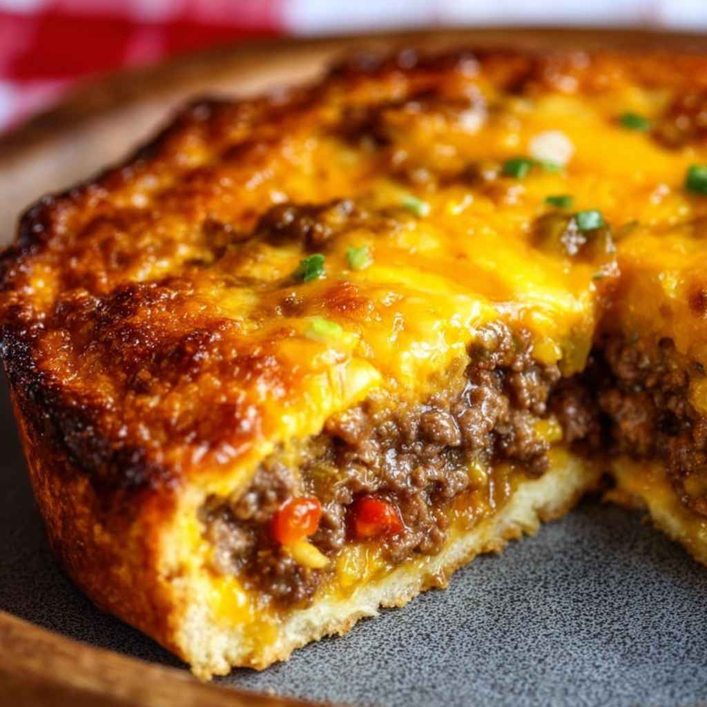 There is a reason this dish has remained a staple in kitchens for decades. This One-Pan Cheeseburger Pie is incredibly efficient, requiring only about 15 minutes of active preparation before the oven takes over. It uses simple pantry staples like biscuit mix and eggs to create a “crust” that magically forms while baking.