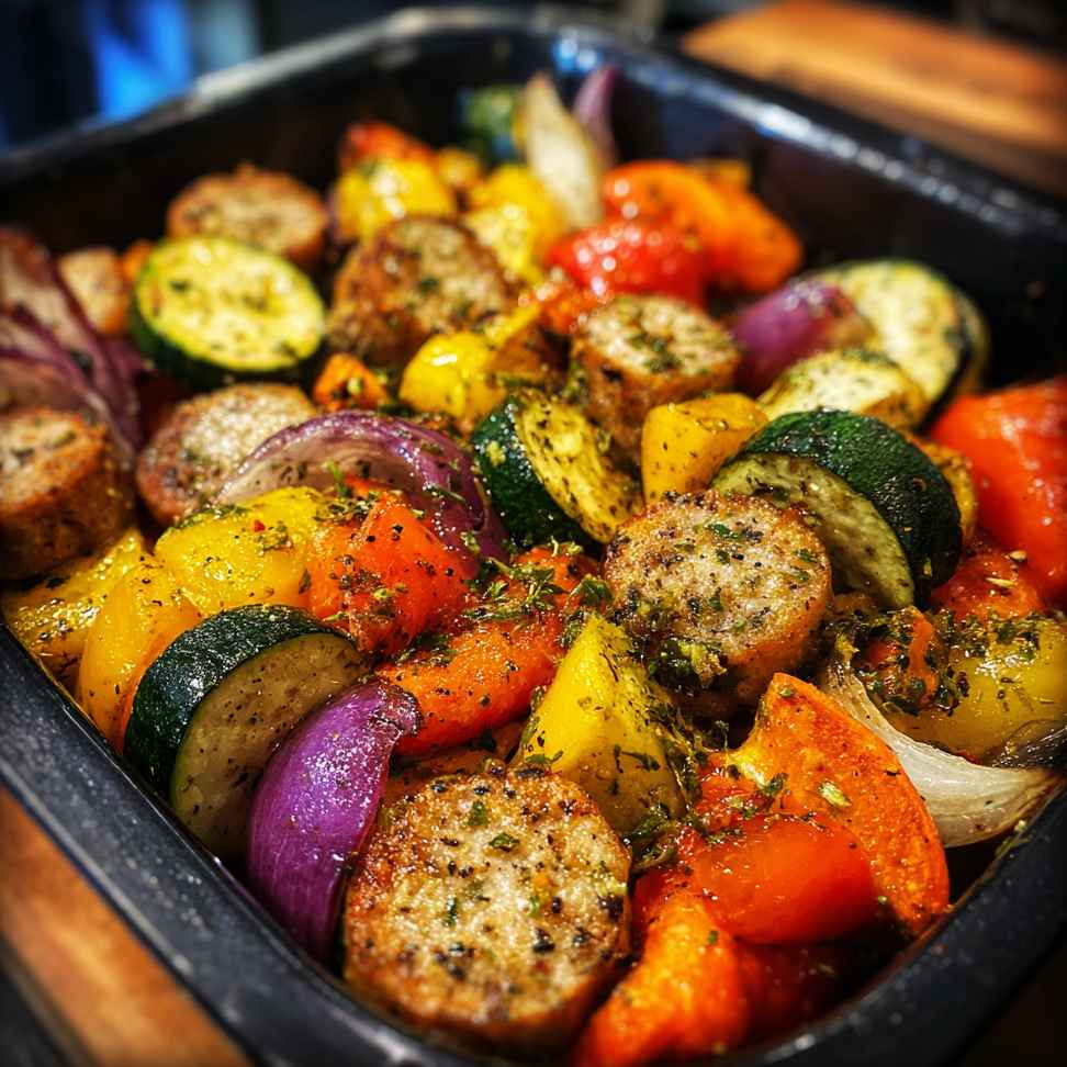 10 Minute Air Fryer Chicken Sausage and Veggies